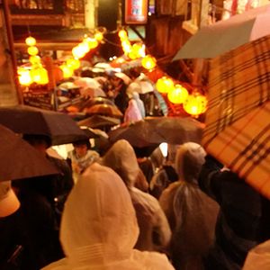 当日は雨。それでも、九份の狭い道は人でいっぱいでした。予定より30分早く切り上げて帰ることにしました。バスツアーでは出来ない対応で、帰りは夜市に送ってもらいました。
