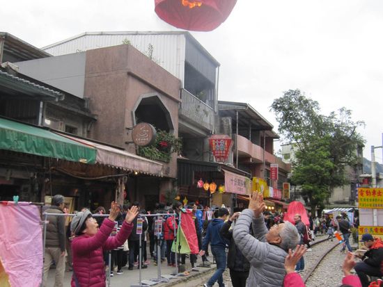 十分ではランタン上げ、十分滝、猫村を見た後、夕暮れの九分に行きました。