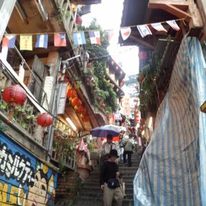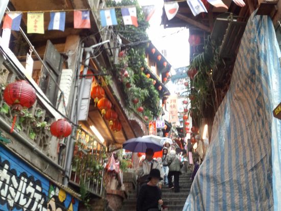 次の日の九份ツアーも同じく何さんのガイドで行くことができました。九份は、何さん曰く、曇空が似合う街だそうで、私達が行った日がまさにそう。