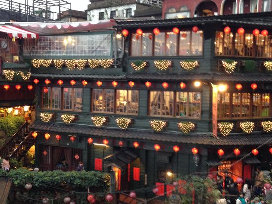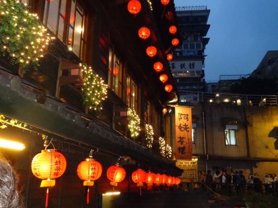 九份の佇まい、眼下に見える海、提灯が灯った町並は情緒たっぷりでした。