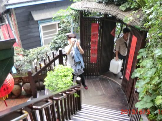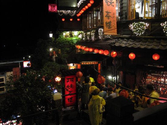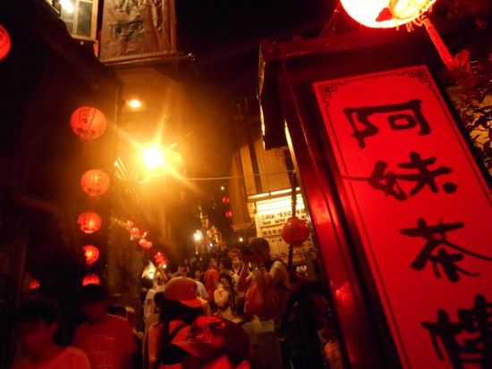 呉さんが待つ瑞芳駅から再び車でいざ九份へ。期待通りのすばらしい夕焼けを見ることができ感動!しかし、なんとも、山の中!にあるんですね、九份。駅がないのも納得。歩くうちにとんでもない混雑に、、と、そこが湯婆婆で有名な「阿妹茶棲」でした!写真撮影かなりトライしたのですが、なかなか思い通りのは撮れず。最後は千尋になった気分で坂をくだり。