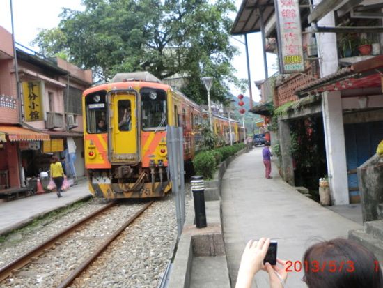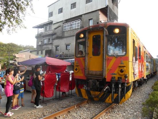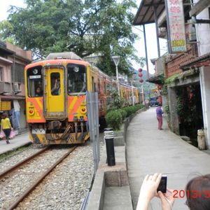平溪線は、外見はぼろい電車ですがなかは普通でちょっと意外。まず切符購入でドキドキ(当然筆談で無問題)。プラットフォームがこちらでいい?で緊張。乗ってもどこで降りる?でハラハラ。3つめと思いきや4つ目の駅が九份への入り口、瑞芳駅でした。