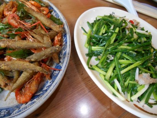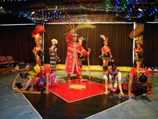 最初の烏来では、ショー開始まで時間があったので、トロッコ(小さい!)で村から麓まで下り、降りた老街(商店街の意味)のローカル客がいる店でお手軽ランチ。エビや魚の揚げ物とネギ料理がうまいうまいと息子達も大喜び。烏来族の若者によるショーは、ダンスのプロを期待してはいけないが、伝統の踊りを一生懸命披露。2組の客しかいない中だれずによくがんばっていました(努力賞もの)。