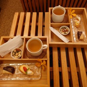 帰り際にお菓子、お茶が出ます。ゆっくり頂いて下さい。
