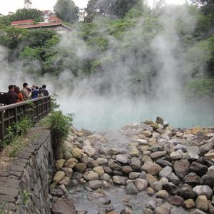 台湾の温泉につかりたくて、1人で参加しました。温泉は、日本の様に、シャンプー、リンス、ドライヤー等と、すべてそろっているわけではありませんでしたが、バスタオルとシャワーキャップは、借りることができます。また、温泉は、すべて屋外にあり、温度の異なるお風呂が楽しめます。いつもの様に、湯船につかりながら、顔をこすっていたら、一緒に入っている台湾のおばちゃんに怒られてしまいました。体をこすってはいけないのだそうで、だた、体に湯をかけるだけなら、良いのだそうです。なるほど、台湾の温泉でのマナーを学びました。また、私のツアーは、私の他にもインドとシンガポールから、それぞれ1人で参加されている方がいて、私だけガイドさんが英語と日本語で説明してくださるので、何だか、申し訳ない感じでした。温泉に行く途中に、公園や、100度に沸騰している温泉の地獄谷みたいな所での観光もあり、暑い1日でしたが、楽しかったです。