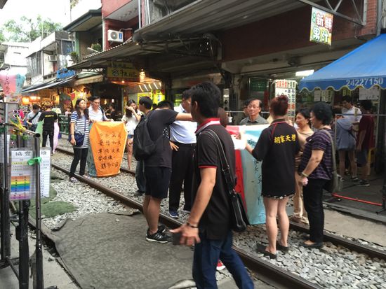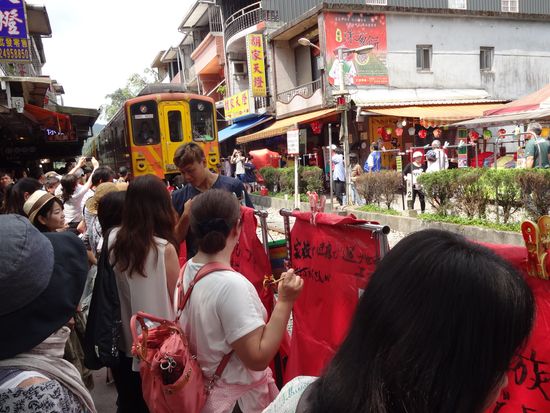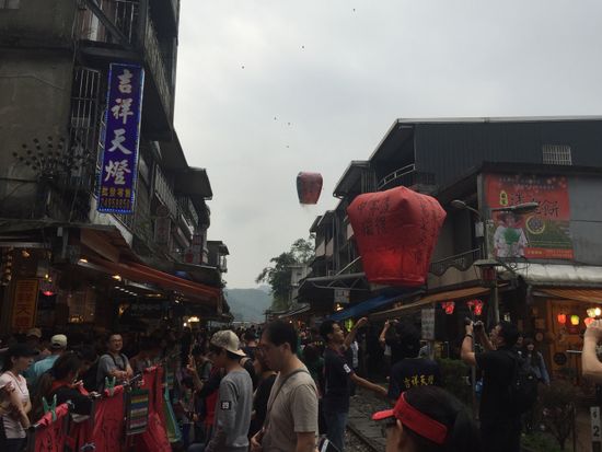 まず、十分に行き天燈上げをしました。中学生の娘2人との女3人でしたので、何かと時間がかかりましたが嫌な顔もせずに待ってくれていました。