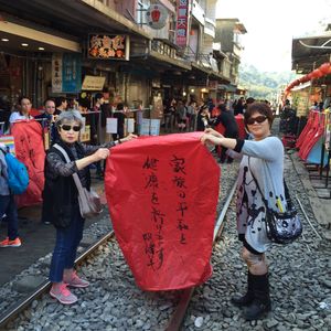 十分からの電車は、ローカル線だけに良かったです。天燈も出来て良い経験でした。以前九份に行った時、時間がなくてすぐ食事でしたが、今回はゆっくり時間が有り、ショッピングにお茶も出来て充分満足できました。