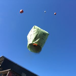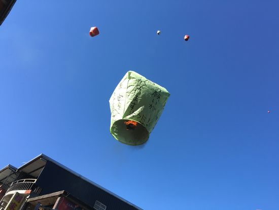 でも、上げる時はあっという間でした。写真たくさん撮りたかったのに、お店の人が、それぞれ願い書いた4面写真撮り終わると、手を離させられ、あっという間に空へ。動画で、あがるとこも撮るつもりだったのに~。段取り大事です。でも楽しかったー!!