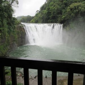 会社研修で台湾へ。所定の最大手旅行代理店では一人\12,800!こちらを検索してみると、約半額で、口コミも高評価。とっととweb予約しました。宿泊先がピックアップホテルではなかったようで、後日改めて連絡があり、お迎え頂けるとのうれしいお返事。当日は気温35℃、湿度70%のうだるような暑さ。外で立っているだけでジトッと汗が…。ツアーコンダクターの葉さんは6年京都でお勤め経験がおありとのことで、ガイドも会話も何の問題もなし。台湾ビューティですね。同乗の方は5人の日本女性で、男は私と子供だけ。皆さんに御気遣い頂き、楽しく見物できました。十分の滝は川の水質が悪く、お世辞にも綺麗とは言えませんが雰囲気は味わえます。九分天燈上げはいいですね!ぜひとも皆さん体験されてください。気持ちが入ります。その後平渓線に乗るとあちこちに残骸が…。回収しないんですかね?ご飯は九分茶楼で。ツアー専用のお店のような、団体さんばかりですが、味はまあまあ。家庭料理風で美味しかったです。御茶をするのでしたら、天空の城がお勧めです。ちょっと外れていますが(中心より50m位(笑))景色も最高、静かで上品な茶楼です。飲みきれない茶葉はお持ち帰りしてくれます。