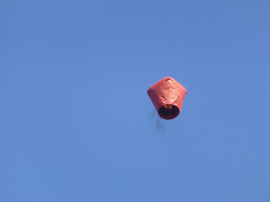 天燈上げでは、お互いの欲の深さと望みの高さに爆笑しながら、4面を書き上げ記念撮影してから飛ばしました。