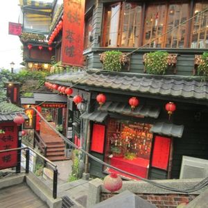 午前のツアーだったので、行きはお店がほとんど閉まっていました。が、お茶屋さんでのんびりお茶をして戻るときにはほとんどのお店が開店していて、行きのうらさみしい雰囲気との対比がかえってよかったです。ただ、軽食は麺を3種から選べたのですが・・イマイチでした。でも、金額からして十分満足のいくツアーでした。次回は夜の九ふんを訪れてみたいと思います。