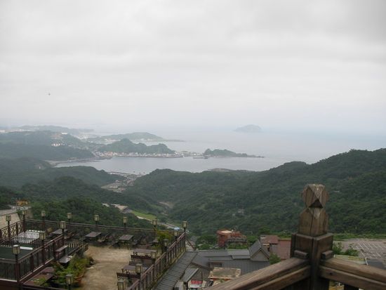 しかし、九分に着く頃には雨も上がり、もやも晴れ、高台から遠くの景色まで見えるようになりました。眼下に広がる海の景色もステキでした。