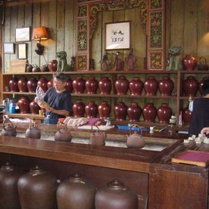 ノスタルジックな雰囲気の街、九フンでは、素敵な景色を見たり芋圓(お汁粉)など食べ歩きをしたり、中国っぽい雑貨をいろいろ買う事ができました。ガイドさんに薦めて頂いた「九イ分茶坊」は内装もステキで、優雅な気分で中国茶を頂く事ができて満足です。残った(使用しなかった)茶葉は、包んでもらえますので、ご自宅のお土産になりますよ♪