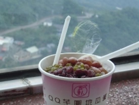 去年の10月につづき2回目の九分観光参加でした。前回の参加が大満足だったのでまた行ってしまいました。阿柑夷のイモ団子と煮豆を氷の上に載せたカキ氷が最高に美味しい!!九分には何軒か同じようなお店がありますが、階段を上がった所にあるこのお店が景色を眺めながら食べられるので一押しです。他にもピーナツとゴマの塊をカンナで削ってアイスと一緒に巻いたクレープもおススメです。そして基山街の中間辺りにあるエスニック風の洋服屋サンにあるビーズ刺繍の洋服やサンダルも素敵ですよ。