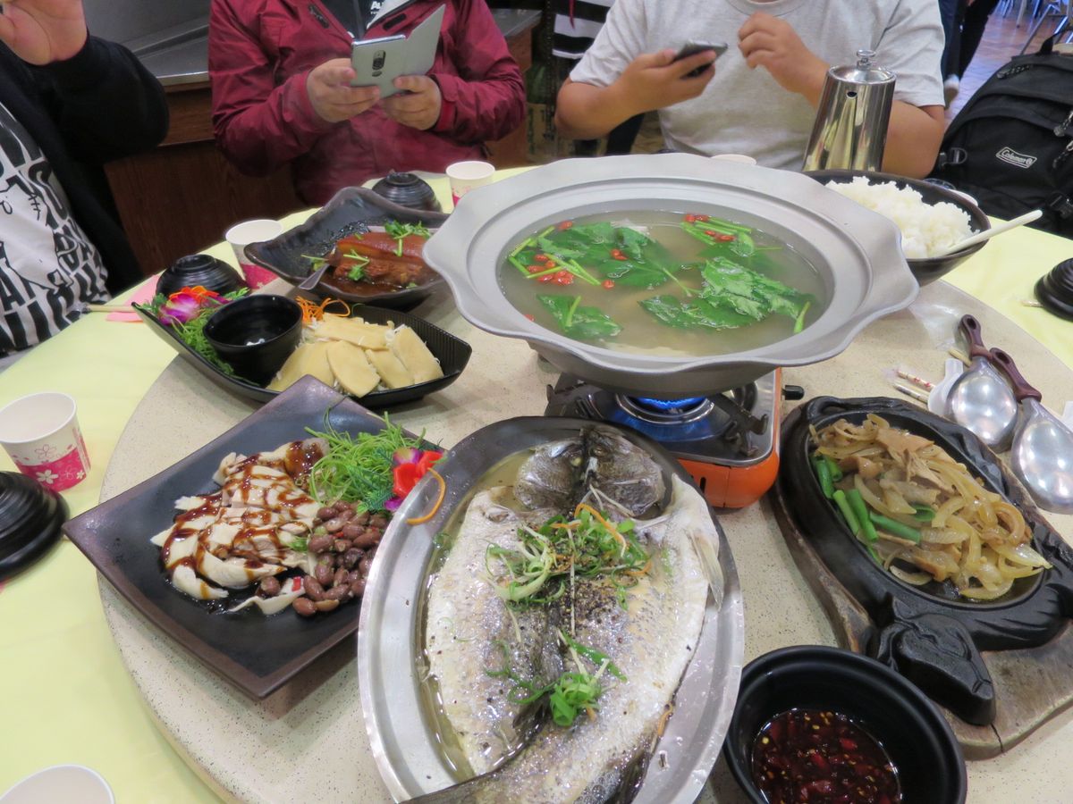 阿里山は良い、という話は聞いていましたが本当に良かったです。ヒノキの香りが漂う標高二千メートルのエリアは、空気が澄んでいて、歩いているだけで浄化されそうな気持ちになりました。天気は快晴で、途中の休憩地点などでは山霧が晴れた山の周辺を流れて行く景色がそれは美しかったです。ランチは山の観光拠点にあるレストランでとりました。当日はちょうど、現地の部族のお正月に当たっていたため、ラッキーなことにいつもより豪華だったそうです。何料理というのかわかりませんでしたが、あっさりした味付けでご飯に合い、とてもおいしかったです。