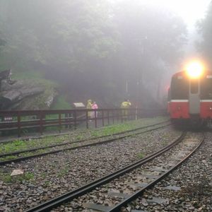 ランチのレストランは残念ながら阿里山賓館ではなかったのですが、どの料理もおいしかったです。食べ終えた頃から雨が降り出し、カッパを着ての散策。かなりの雨風で大変でしたが、霧の中の神木駅は良い雰囲気でした。