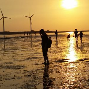高美湿地は堤防から長い桟橋が干潟に続き、多くの人達が夕日を見に集まっていました。浅い干潟に入って遊ぶ人もいました。ただし、吹きっさらしなので冬は辛いし、雨や曇りでも楽しくないかも。