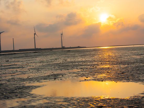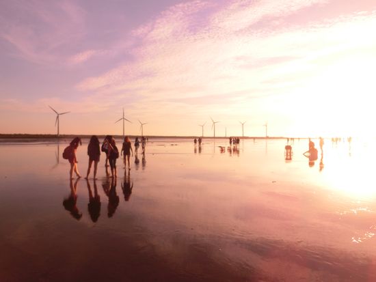 ラストは夕暮れの「高美湿地」へ。水が引いていてちっちゃな蟹がいっぱい。