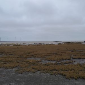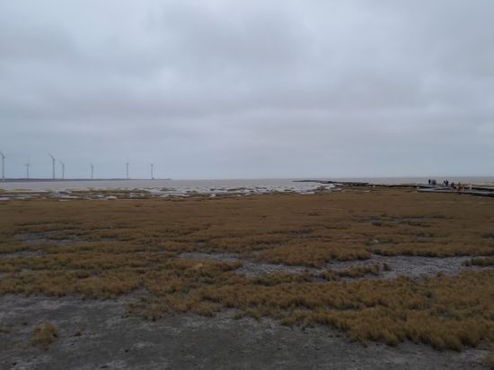 <残念3>天候のせいか、高美湿地はカラカラで、ウユニ塩湖ではなくゴビ砂漠状態でした。僅かに残った水たまりも風が強く波立っていて...風力発電があるので元々風の強いエリアなのかもしれません。前回は一面鏡張りだったのですが...。
