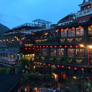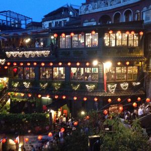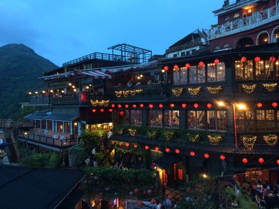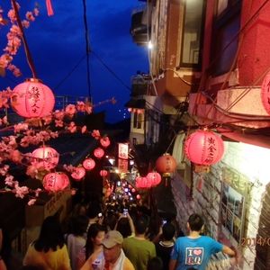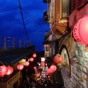 15時出発で十分、青雲殿、九分に行きました。天燈上げはお願いをしっかり書いた後、あっという間に飛んで行きましたが楽しかったです。青雲殿は一番上まで上がった時、丁度夕陽を浴びてとても綺麗でした。観光客は誰もいなくてもったいないくらい。九分に着いたとき日が暮れて、阿妹茶樓の二階で夜景を見ながらお茶を頂きました。写真を撮ったり、お店をのぞいたりで2時間近くいました。さっき行った青雲殿も見えました。平日でもすごい人ですので土日は避けたほうがいいそうです。