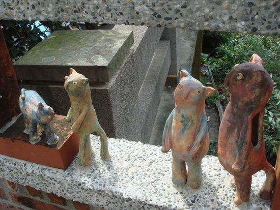 ガイドが食べ物屋や土産物屋ばかり説明した後、九分茶坊前で一時間の自由行動になったのです。私たちは「千と千尋」の阿妹茶酒館や非情城市にも後で立ち寄る時間があるのだろうと思っていました。しかし、集合した後は、ドンドン階段を降りて行き、肝心の阿妹茶酒館や非情城市の前では写真を撮るだけの時間しかありませんでした。ガイドに促されまた階段を降りると、バスが待っていて乗るだけでした。