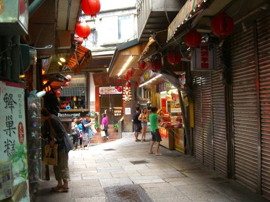 台湾に2つの台風が接近。旅行のキャンセルの覚悟で当日空港へ。何事もなく時間通りに飛ぶ。到着の次の日、午前中に九イ分へ。これも台風の影響で傘を持っていくが、現地では晴れ。平日の午前中でにツアーで現地の九イ分も観光する人も少なく、観光しやすい感じ。また、夜は夜で感じも違うのでしょうが・・・。