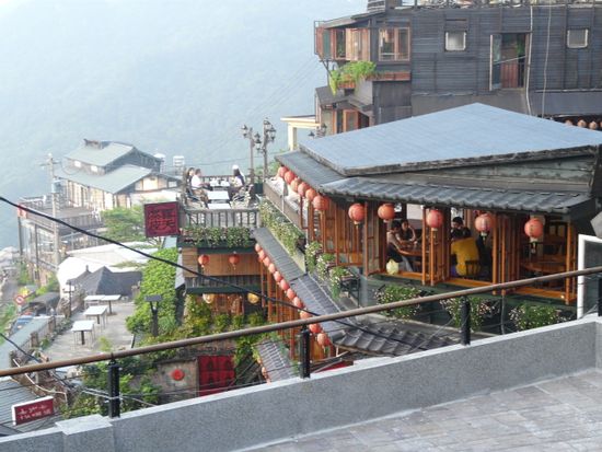 ガイド曰く、九ふんは良く雨が降るらしい、又土日祭日はかなりの人ごみでごった返す模様。雰囲気的には、昼間より夕方から夜にかけた時間帯が、情緒があるのでお勧め。提灯の明かりがうっすらと照らす位の明るさが宜しいかと思います。このご時世か、強盗があったらしく警察が来ていた。