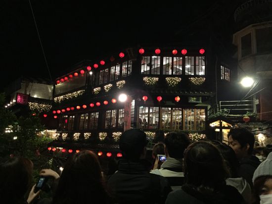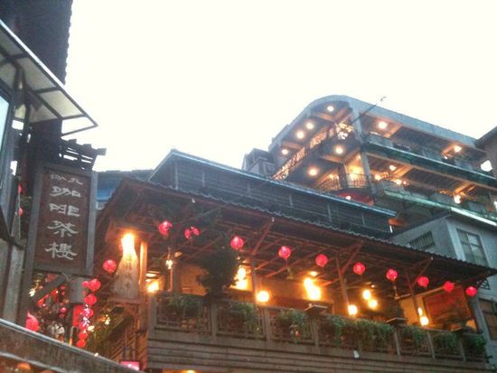 夜景のライトアップ前に時間がきてしまい残念でしたが千と千尋の湯屋モデルのお茶屋でお茶を楽しめたのはラッキーでした。九分は1泊することをお勧めします