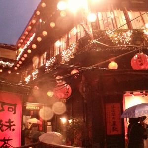 台北を出るときは曇り空だったけど、十分に着いたら小雨が降っていました。でも天燈上げは問題なく楽しむことが出来ました。そのあと滝に行く予定でしたが、高齢の叔母が一緒だったのと雨だったのでキャンセルし九份へ。