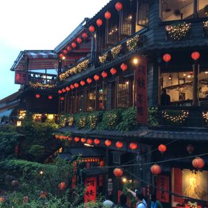 本来ならライトアップされる夜のツアーの方が綺麗だとはおもいましたが、ツアー終了時間の頃にはライトアップもみれたので十分満足できました!私達がいった6月は台湾では梅雨明けだというのに3時位からスコールが一時間くらいふるのが当たり前のようで雨具は用意してましたが台北の集合場所を出たときにはどしゃ降りの九ふんを想像してました。カラッと迄はいきませんが九ふんは雨に降られることはありませんでした。台北とは逆な天候とガイドさんに教えてもらいました。フリー旅行できている私達は初九ふんは勿論のことそれ以外も日本人のガイドさんに教えて頂き助かりました
