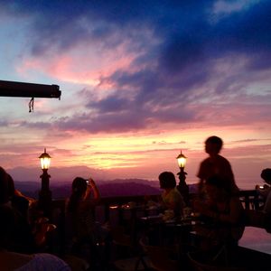 夕暮れの九份でお茶を飲みながら隣の席の外国人観光客とのおしゃべりを楽しみ、