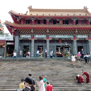 台湾人女性一名、欧米人男性1名、東洋人2名と、われわれ3人でワゴン車に定員乗車で出発。ガソリンスタンドでのトイレ休憩をはさみ、1時間半程度でまずは、文武廟の見学を自由に30分程度。ガイドさんが家族写真を各々とってくれ、ラインでデータを各所でいただけました。