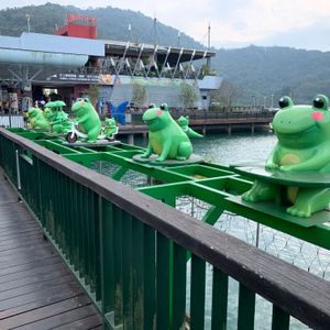 台北から新幹線で台中。五ヶ国人相乗り。廟,ロープウェイ,遊覧船,昼食とサイクリング。これは少しガッツがないと。往復で60分多少アップダウン。昼食は10人で十把一絡げ的評価低い。午後から土砂降り。