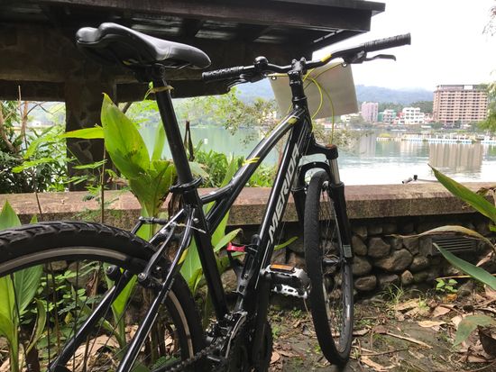 山の中にあります。台中から1時間くらいです。ついたら平坦なサイクリングを楽しめる。いい自転車がたくさんあるので自分に合ったものを右コースと左コースに分かれて1時間くらい時間があるのでのんびりと。ぎっくり腰があるので心配でしたが、問題なく湖を回れました。