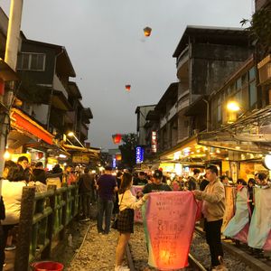九份では、案内がよく、天気も良く、夜の風景が素敵でした。花文字も買えて良かったです。十分(天燈上げ)は、いいですよ。ランタンは、一つずつ上がるのですが、幻想的です。その真横を電車が通り驚き。線路の真ん中で、天燈を上げるんです。