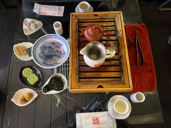 あいにく到着時に小雨だったのが、本降りになり、写真の茶楼でお茶をいただきながら雨宿りしました。小雨になってから街歩き、食べ歩きもできました。