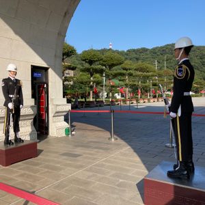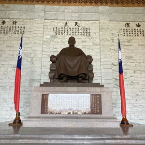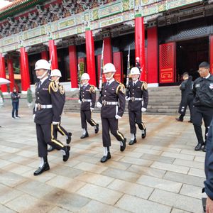 先ず総督府前の広場に降りて5分程度記念撮影。その後円山大飯店20分、忠烈祠30分で衛兵交代式を見学。故宮は60分で30分はガイドさんに説明されながら簡単に代表的な展示見学があり残り30分の自由時間で見れなかった物を自分で見学。最後に中正記念堂で15分程度で裏から直接本堂?に入り蒋介石とそこから広場を見て終了でした。