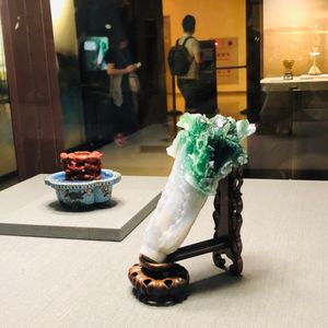 世界四大博物館の一つに数えられ、「故宮の国宝をみずして、中国の文化芸術を語るなかれ」と言われるほど。ここには歴史上の重要な芸術品、文物が70万点近くが収蔵されています。実際に展示されているのは1%に満たないので行くたびに新しい発見があります。時間が限られる場合は、事前にポイントを絞り目当てのものを見逃さないようにしたい。豊富な知識を持つガイド付きのツアーなら楽しみ方のツボをおさえた鑑賞が出きるのでおすすめです。 ☆至宝のコレクションの一例☆ ≫ 翠玉白菜:翡翠の原石を作って作られた高さ19cm程の白菜の置き物。葉の部分には子孫繁栄の象徴とされるキリギリスとイナゴが付いています。 ≫ 肉形石 天然石で作られた、豚の角煮にそっくりな置物。素材の形や色を活かし、皮や脂身、赤身などが表現されている。