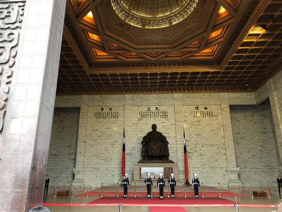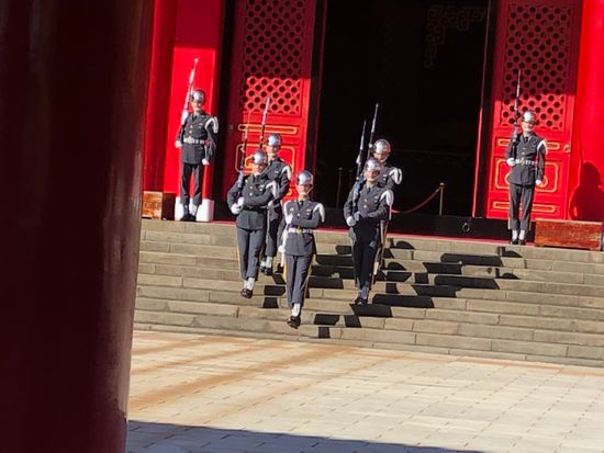 忠烈祠には、衛兵交代式のベストタイミングで到着!到着するや否や衛兵さんがお出ましになり、一連の交代式を見ることができました。故宮博物館から忠烈祠までの道中、台湾の徴兵制度等について王さんが詳しく説明してくださったおかげで、色々な想いを抱きながら交代式を見学することができました。