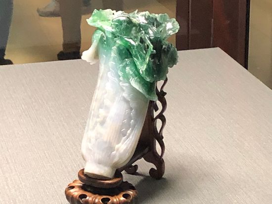世界四大博物館の一つに数えられ、「故宮の国宝をみずして、中国の文化芸術を語るなかれ」と言われるほど。ここには歴史上の重要な芸術品、文物が70万点近くが収蔵されています。実際に展示されているのは1%に満たないので行くたびに新しい発見があります。時間が限られる場合は、事前にポイントを絞り目当てのものを見逃さないようにしたい。豊富な知識を持つガイド付きのツアーなら楽しみ方のツボをおさえた鑑賞が出きるのでおすすめです。 ☆至宝のコレクションの一例☆ ≫ 翠玉白菜:翡翠の原石を作って作られた高さ19cm程の白菜の置き物。葉の部分には子孫繁栄の象徴とされるキリギリスとイナゴが付いています。 ≫ 肉形石 天然石で作られた、豚の角煮にそっくりな置物。素材の形や色を活かし、皮や脂身、赤身などが表現されている。