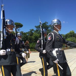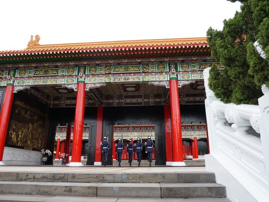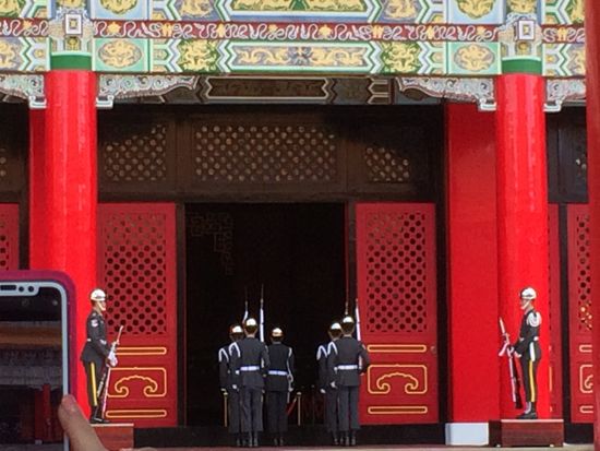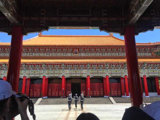 中正記念堂では開門から衛兵交代が見られました。暑かったけど最高の天気で、空の青色、建物の屋根のオレンジ色、芝生の緑、きれいでした。故宮博物院は混雑していましたが、じっくりみるのではなく、有名どころを足早にという感じなので、それほど興味がなく、それでokという方には十分です。ガイドの方は参加者に合わせ、日本語と英語とで説明してくれました。半日で主要なところをざっとまわれるので、半日は他のことに有効に使えていいと思います。