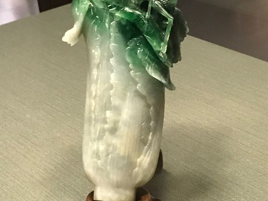 世界四大博物館の一つに数えられ、「故宮の国宝をみずして、中国の文化芸術を語るなかれ」と言われるほど。ここには歴史上の重要な芸術品、文物が70万点近くが収蔵されています。実際に展示されているのは1%に満たないので行くたびに新しい発見があります。時間が限られる場合は、事前にポイントを絞り目当てのものを見逃さないようにしたい。豊富な知識を持つガイド付きのツアーなら楽しみ方のツボをおさえた鑑賞が出きるのでおすすめです。 ☆至宝のコレクションの一例☆ ≫ 翠玉白菜:翡翠の原石を作って作られた高さ19cm程の白菜の置き物。葉の部分には子孫繁栄の象徴とされるキリギリスとイナゴが付いています。 ≫ 肉形石 天然石で作られた、豚の角煮にそっくりな置物。素材の形や色を活かし、皮や脂身、赤身などが表現されている。