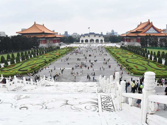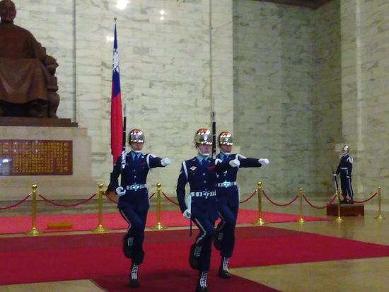 中正紀念堂では、その時間しか見られない衛兵さんのパフォーマンスが見られました。