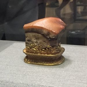 世界四大博物館の一つに数えられ、「故宮の国宝をみずして、中国の文化芸術を語るなかれ」と言われるほど。ここには歴史上の重要な芸術品、文物が70万点近くが収蔵されています。実際に展示されているのは1%に満たないので行くたびに新しい発見があります。時間が限られる場合は、事前にポイントを絞り目当てのものを見逃さないようにしたい。豊富な知識を持つガイド付きのツアーなら楽しみ方のツボをおさえた鑑賞が出きるのでおすすめです。 ☆至宝のコレクションの一例☆ ≫ 翠玉白菜:翡翠の原石を作って作られた高さ19cm程の白菜の置き物。葉の部分には子孫繁栄の象徴とされるキリギリスとイナゴが付いています。 ≫ 肉形石 天然石で作られた、豚の角煮にそっくりな置物。素材の形や色を活かし、皮や脂身、赤身などが表現されている。