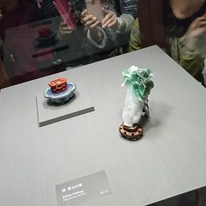 世界四大博物館の一つに数えられ、「故宮の国宝をみずして、中国の文化芸術を語るなかれ」と言われるほど。ここには歴史上の重要な芸術品、文物が70万点近くが収蔵されています。実際に展示されているのは1%に満たないので行くたびに新しい発見があります。時間が限られる場合は、事前にポイントを絞り目当てのものを見逃さないようにしたい。豊富な知識を持つガイド付きのツアーなら楽しみ方のツボをおさえた鑑賞が出きるのでおすすめです。 ☆至宝のコレクションの一例☆ ≫ 翠玉白菜:翡翠の原石を作って作られた高さ19cm程の白菜の置き物。葉の部分には子孫繁栄の象徴とされるキリギリスとイナゴが付いています。 ≫ 肉形石 天然石で作られた、豚の角煮にそっくりな置物。素材の形や色を活かし、皮や脂身、赤身などが表現されている。