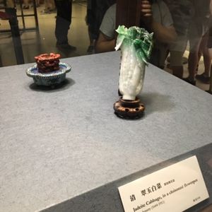 世界四大博物館の一つに数えられ、「故宮の国宝をみずして、中国の文化芸術を語るなかれ」と言われるほど。ここには歴史上の重要な芸術品、文物が70万点近くが収蔵されています。実際に展示されているのは1%に満たないので行くたびに新しい発見があります。時間が限られる場合は、事前にポイントを絞り目当てのものを見逃さないようにしたい。豊富な知識を持つガイド付きのツアーなら楽しみ方のツボをおさえた鑑賞が出きるのでおすすめです。 ☆至宝のコレクションの一例☆ ≫ 翠玉白菜:翡翠の原石を作って作られた高さ19cm程の白菜の置き物。葉の部分には子孫繁栄の象徴とされるキリギリスとイナゴが付いています。 ≫ 肉形石 天然石で作られた、豚の角煮にそっくりな置物。素材の形や色を活かし、皮や脂身、赤身などが表現されている。
