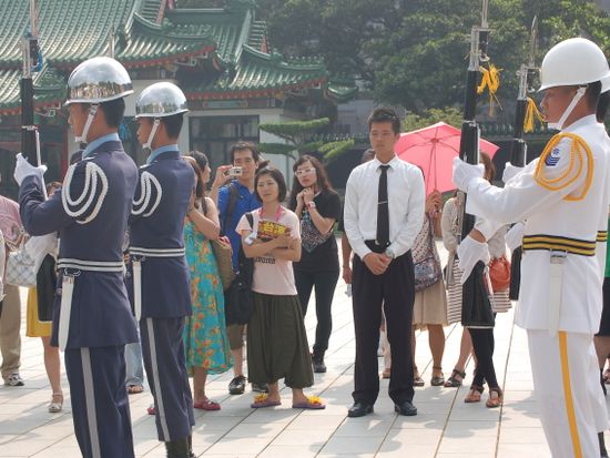 台北の観光スポットをさくっとまわるコースです。午前8時過ぎから出発しましたが、12時前には終わっていました。中世記念堂へは衛兵交代式の時間に合わせて案内をしてくれるので、絶好のタイミングで交代式を見ることができました。私が参加したときは計5名の少人数グループだったので、ガイドさんにもいろんな質問をすることができ、台湾の歴史が良く分かり、勉強になりました。ひとつ残念だったのが、故宮博物館名物の白菜と豚の角煮が見られなかったことです。なんでもこの二つを見るためには一時間ほど列に並ばなければならないとのことで、ガイドさんの判断でパスしたようです。