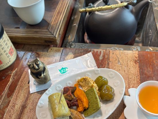 店を探すのに少し迷いましたが、景色の良い席に案内していただき、お店の中にもたくさんの可愛い置き物や茶器があって素敵でした!