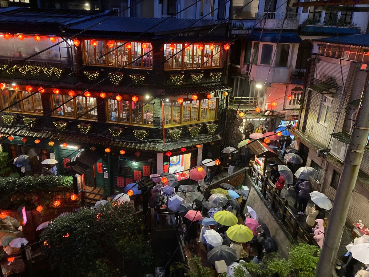ご指摘の通り、九份の象徴的な眺望を求めて多くの方が集まるバルコニー周辺は、特に混雑しやすく、ご不便をおかけしたかと思います。