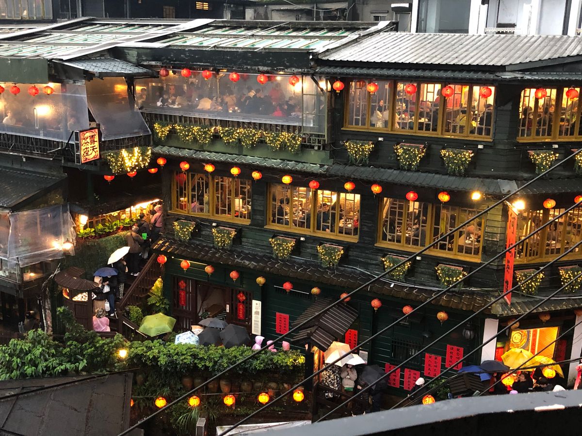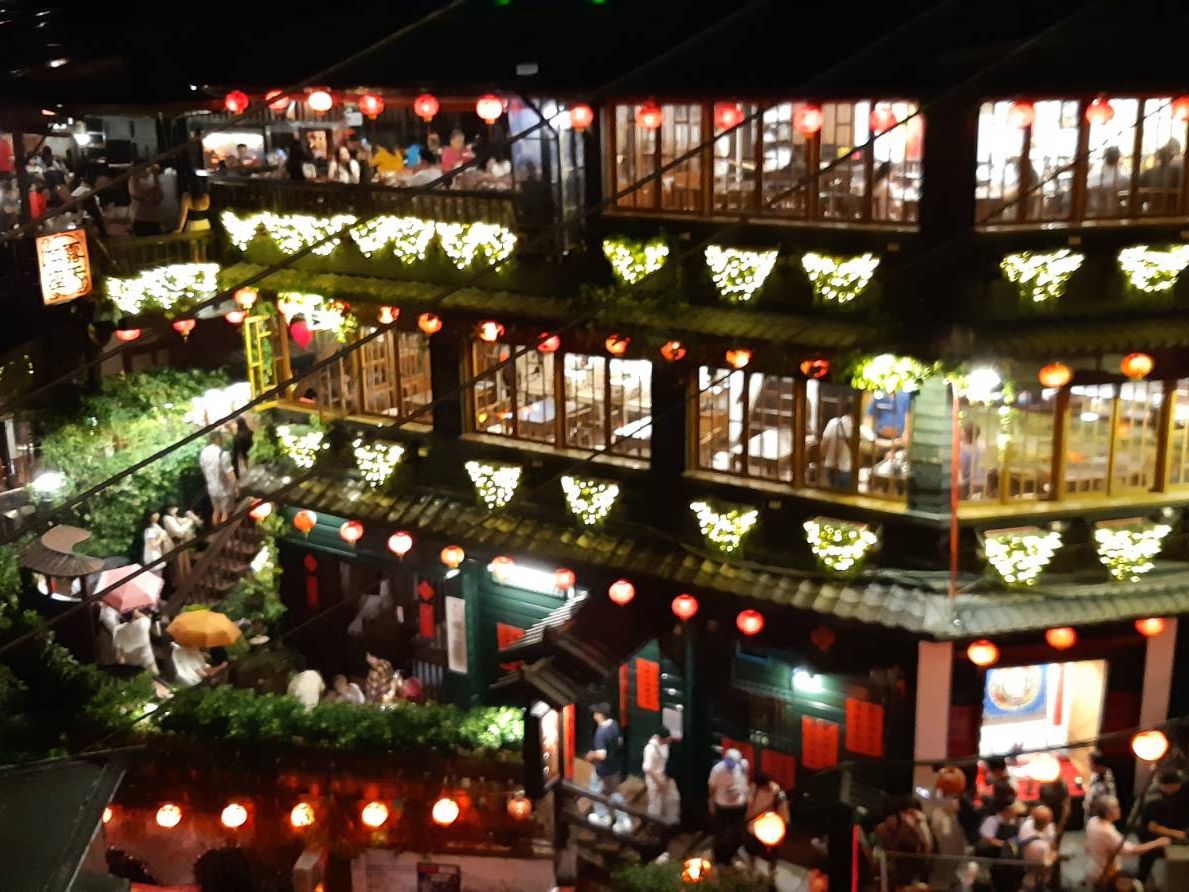 春節の真っ最中に九份を訪問、街は観光脚で身動きができないほどの賑わいでした。お店は入店制限をしている為か、撮影スポットになっているエントランス階段は観光客が一杯のため入店できず暫し立ち往生。暫くしてお店の人が出てきて漸く店内へ。店内は比較的すいており、2階の窓際へ。窓からの景色は素晴らしく、天気が良かったこともあり食事をしながら夕暮れの景色変化を楽しんだ。食事内容は、普通。食事が終わり店外に出たところ、エントランスは人数制限がされており、向かいの建物をバックに夜景撮影を堪能した。